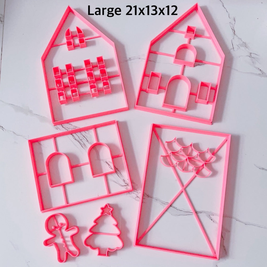 Large : 21cmx13cmx12cm (4 cutter + 1 stamp roof + 2 free : gingerman & tree)